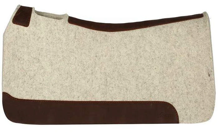 This saddle pad from 5 Star Equine is made of Natural Colored Virgin Wool. It is 3/4″ thick. It is a great pad for Roping, Ranching, Trail Riding, Running barrels, or almost anything! The 100% pure virgin wool felt wicks away moisture, cleans up easily and stabilizes your saddle with limited cinching. Wear leathers provide protection and durability. Hand-made in the USA!
