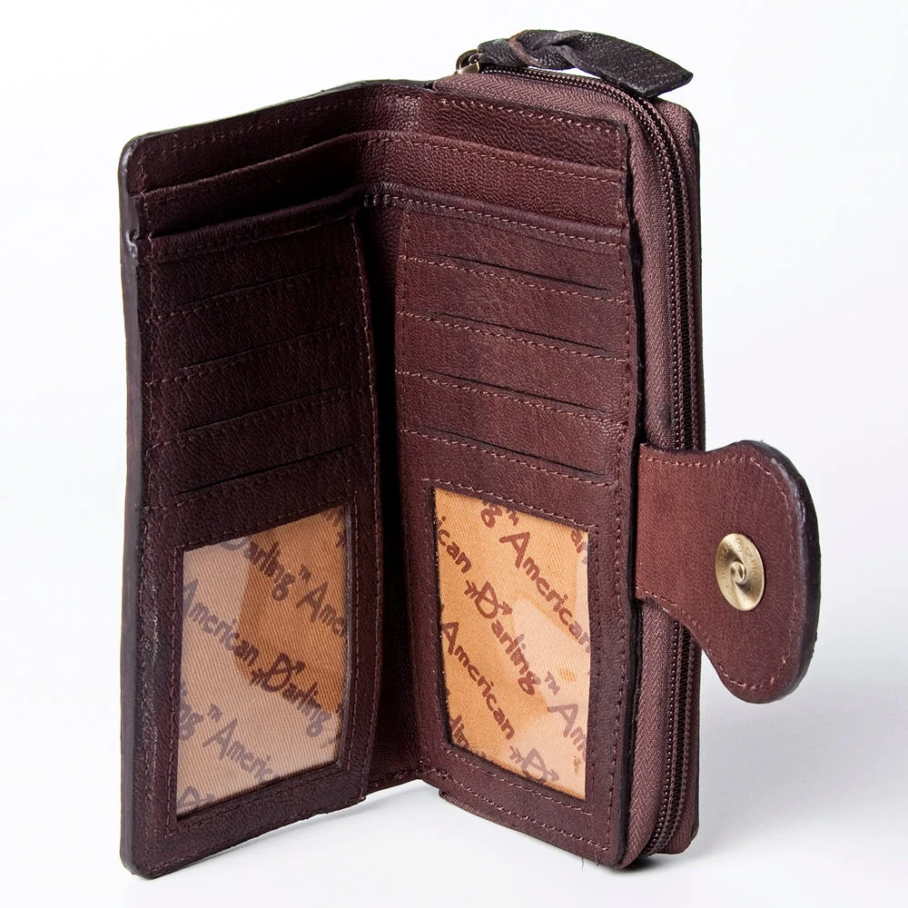 This great wallet by American Darling is tooled in a beautiful flower pattern and has lots of different zip up compartments as well as room for your cards and pictures.