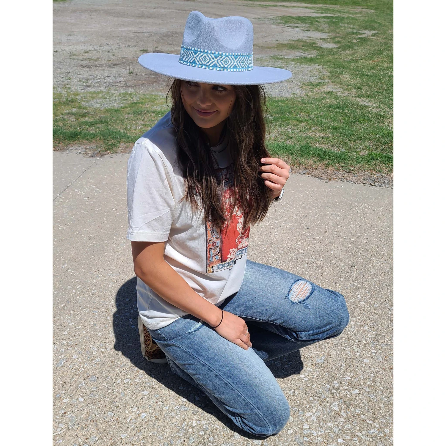 Who doesn’t love the blue color that this fun hat offers? It would look great paired with a nice pair of jeans, shorts or your favorite dress.