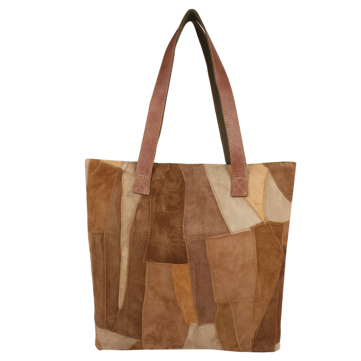 This large purse features multiple colored patches that are sewn together! It has a large compartment that has plenty of room for storage!