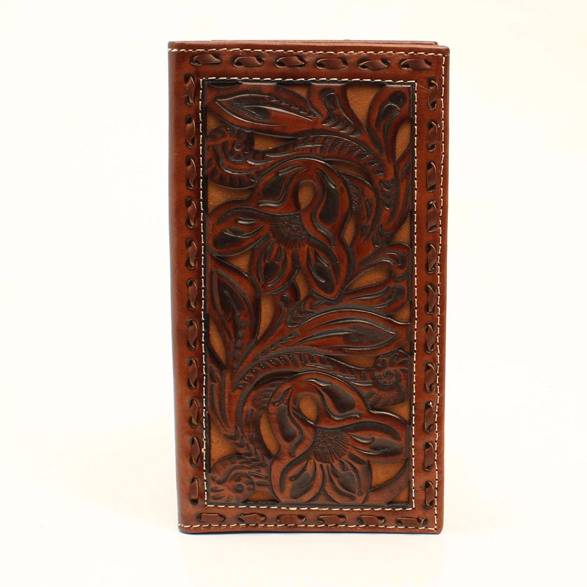 This rodeo wallet from Nocona has an embossed floral design on the front! The wallet measures 6 3/4 by 3 3/4.