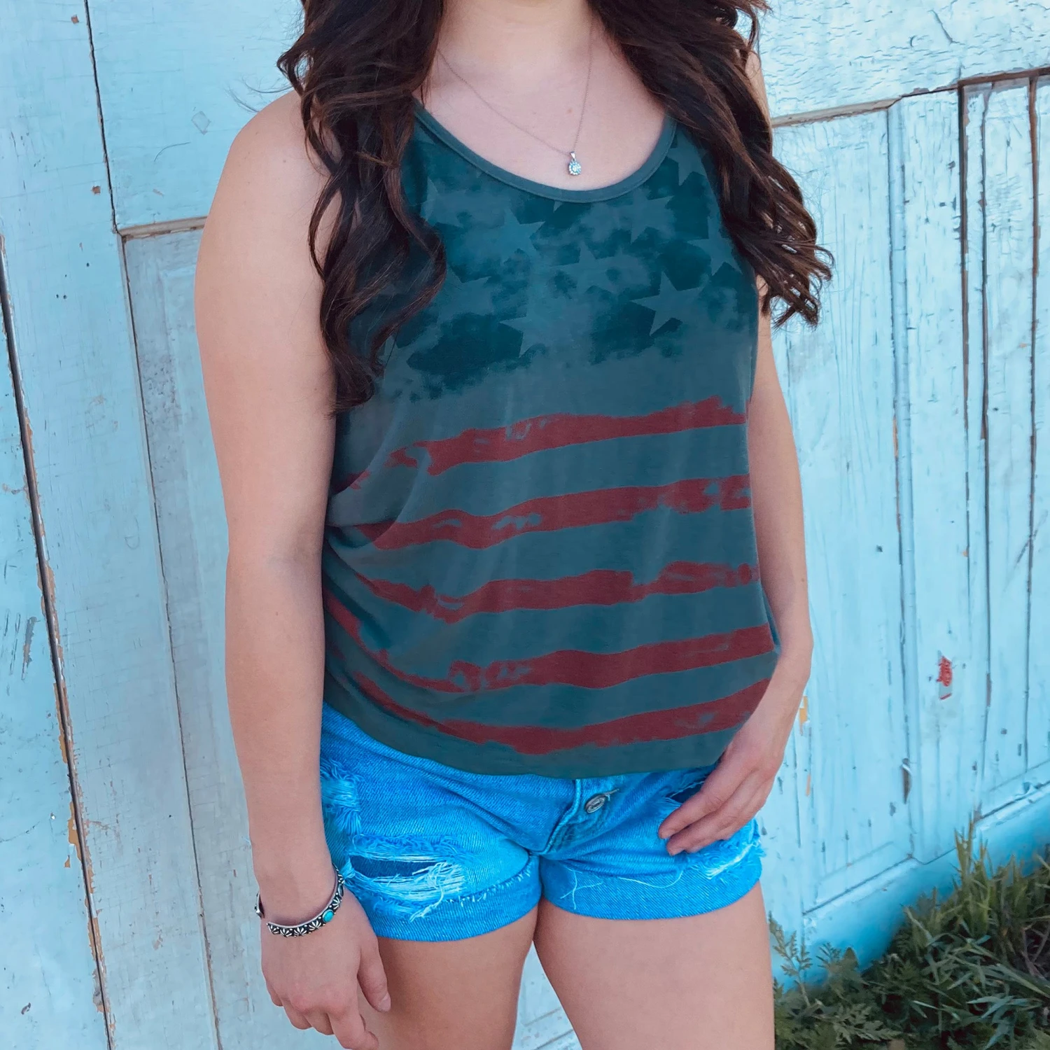 This army colored American flag tank is the perfect tank to show off your American spirit! Its olive in color and features the American flag print on the front.Ā