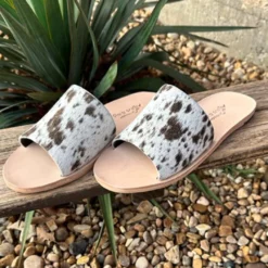Nadia Chocolate Cowhide Slides