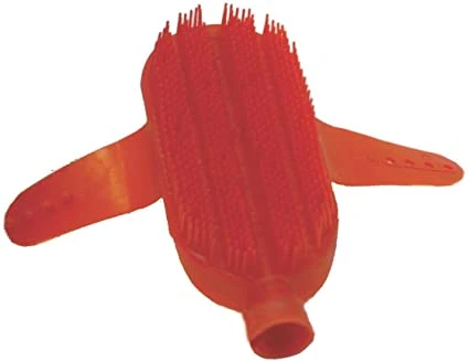 Red Plastic Curry Comb With Strap & Hose Attachment