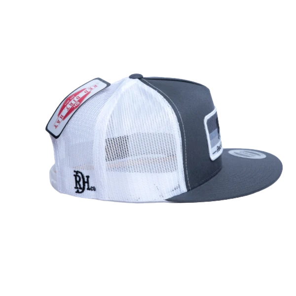 This Red Dirt cap is Charcoal and white, Classic 5 panel style, snapback & features the “Stoney Buffalo” patch.